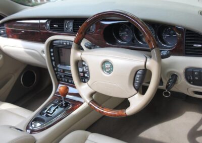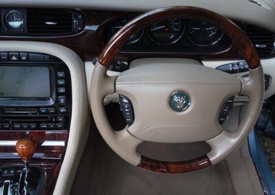 First of the X350, and the last Jaguar body shape to be visually inspired by the original ‘Sir William Lyons’ XJ; this is a modern classic in its own right. A car we know well having sold it previously, the servicing has been main dealer since new- primarily RA Creamer (who held two Royal Warrants) and latterly Stratstone, 61,000 miles from new. Tyres are premium brand Pirelli and factory approved parts have been always supplied during the course of maintenance. The car has a high specification and also features a tilt and slide electric sunroof. It is rare as a 4.2 V8, being most desirable with the smoothest performance and comfort suspension. The attractive Diamond Blue paintwork and Sand coloured hide interior is all in lovely order and complements the car’s chrome detailing and traditional wood veneers. Underneath, the car is beautifully preserved.