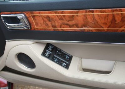 There is an abundance of bills and service history. Just serviced, recent premium brand tyres all round with reconditioned alloy wheels and the air conditioning has received extensive work with drier, condenser and compressor all overhauled by an ex- Salmon Davia and Alpinair specialist engineer. Importantly this is first of the revised (Ford era) models retaining the now coveted original shape and featuring the smarter dashboard configuration. Last but not least, this has the smoothest and most refined AJ6 engine of the bunch- the ‘pre cat’ 4 litre with sport mode. Finished in the always popular colour scheme of Regency Red with Doeskin Leather. An immaculate, well specified example.