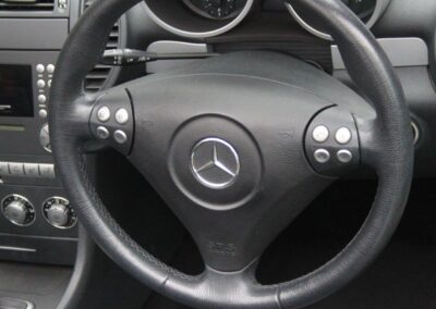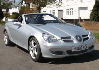The larger engine configuration for these luxury compact convertibles, this goes like a rocket and handles like it is on rails. Being the second generation, this is arguably the best looking as a future classic particularly with the retro-style front and from a practical perspective the electric hood folding mechanism completes its task significantly faster than the original, and provides greater boot capacity. We have known this car since new as it was purchased by a business associate in the property arm who retained it until gifting it to her daughter about 5 years ago. We subsequently purchased from her following a house move and sold it on to a regular client for occasional use as a spare summer roadster that looked classic, but could be relied on for long distances. The mileage is just 17,000 since new. Finished in the ‘only’ combination for a Mercedes sports of its ilk- Silver with smartly contrasting Black Hide. The condition of this car is hard to fault, and it presents as new