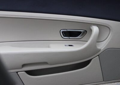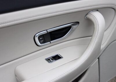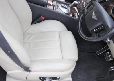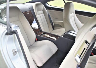 Such a beautifully proportioned luxury touring coupe, the crisp lines of earlier models are arguably the prettiest, and the condition of this Jack Barclay supplied example is remarkable- the touch, look, aroma and handling of this one hasn’t faded from the day it was born having been in the hands of the same family until 2019. The original owner passed away when the vehicle was still almost new, but it was retained by his widow who was always chauffeur driven, though most of the time it was kept in a private underground car park in Regents Park from where we first purchased it. For some years however, the car was used at family residence in The French Riviera and its usage increased between 2016-2018 including driving the journey between these homes. In 2019, we had the car checked and serviced by reputed specialists Frank Dale and Stepsons to prepare it for sale our client who has only used it sparingly since. Please see a number of detail photographs on our web site, especially noting the astonishing condition underneath even with its factory stickers still intact- this being a combination of light use, exceptional storage with chauffeur pampering and an ‘Supagard’ protective treatment arranged for the car early in its life. Ten services have been carried out. Finished in Moonbeam Silver with Portland Hide, this Bentley looks smarter still with the top roll and arm rests trimmed in Dark Blue
