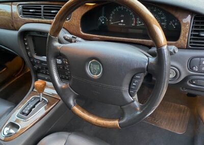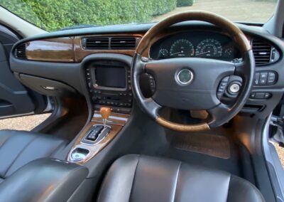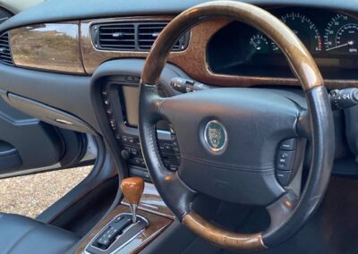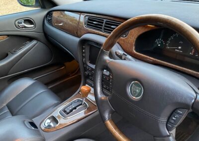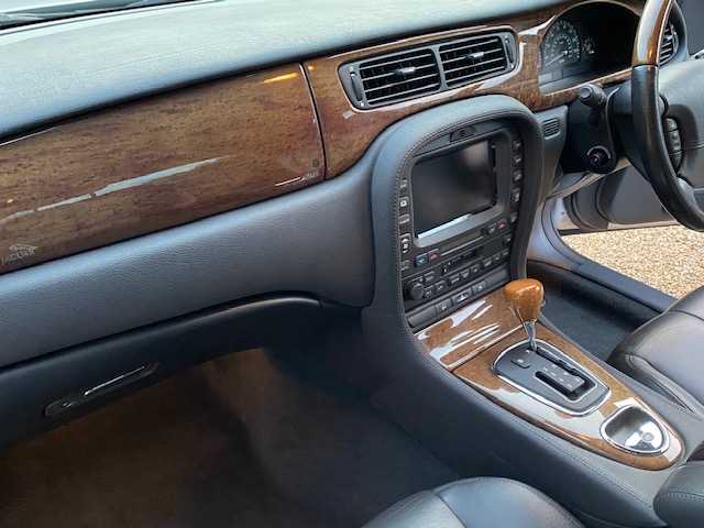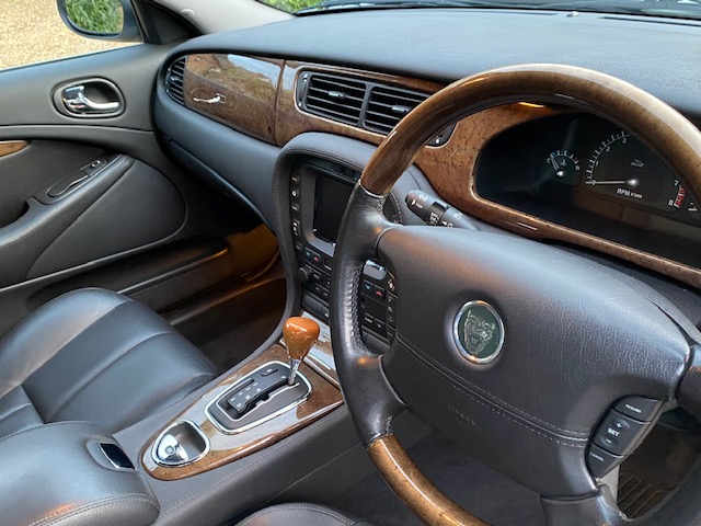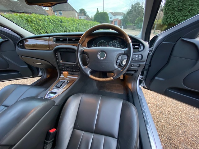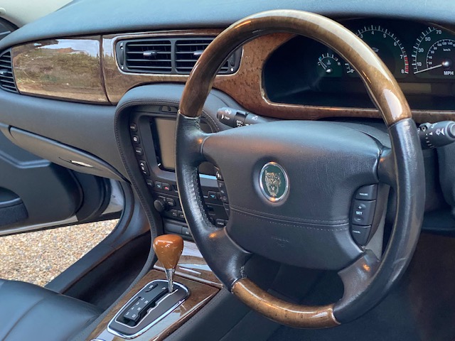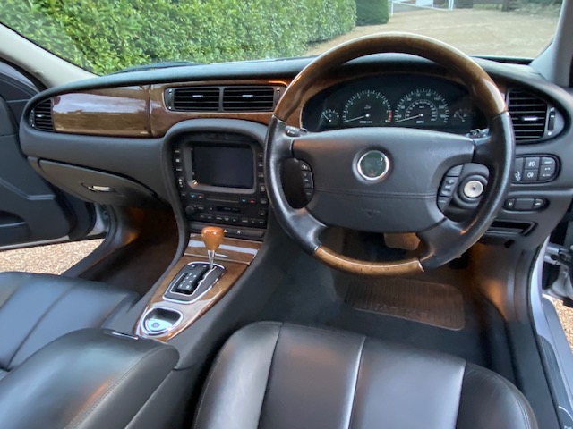 A rarity having had one private owner since new who has had the car maintained to exacting standards as the service record stamped through the book and file of invoices from the original purchase order through to the most recent service bill supports. The mileage is just 37,000 from new. This Jaguar has a good specification too with the larger engine, wood-rim steering wheel, power-fold mirrors, parking sensors and satellite navigation included with the extras. Garaged all along, we purchased the car directly from the owner who has retired from driving. It is ULEZ compliant. Finished in Liquid Silver with smartly contrasting Charcoal Hide and classic veneers. Exquisite order throughout.