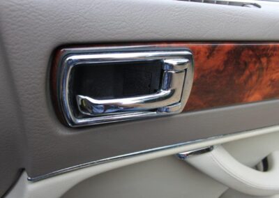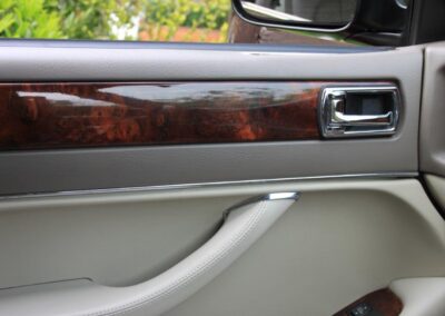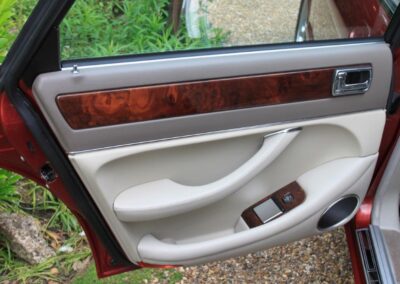 The AJ16 engine is arguably the safest choice with its easily maintained straight-six configuration and famously robust nature, so with the majority of examples driven to a stratospheric mileage, this one is unusual with just 32,000 warranted miles. It is the high cast ‘Sovereign’ with niceties such as bi-folding mirrors, electric memory heated seats, chrome window surrounds and plinths. Traceable with us back to its first mile, we first purchased the car from the original owner on The Isle of Man (around 2005) and sold it to the second owners who are regular clients in Wicklow, near Dublin. Purchasing back again in 2015, we re-patriated and sold the car to the last owner in Hampshire who has parted with it back to us only due to his retirement from driving. Around £1,500 has just been spent on servicing, replacing ageing bushes etc.. Finished in Carnival Red with Oatmeal Hide and ‘classic’ wood, we have detailled this highly original and genuine car to show condition ready for it to be enjoyed by its next custodian.