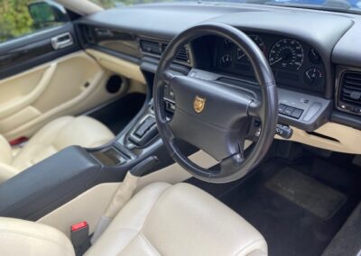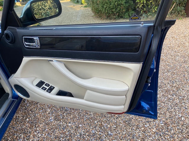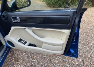The AJ16 engine has earned a favourable reputation for durability and ease of maintenance, though it was only fitted to the XJ saloon for three years in the X300. This ‘sport’ version is a head turner in Antigua Blue with black window surrounds and ivory hand painted coach lines. The interior is immaculate with Ivory Hide contrasting darkened veneers and black carpeting. This low ownership example was in the hands of a lady owner from 18 months old until we first acquired it around 2015 and sold it from our stand at the NEC Classic Motor Show. The car has been meticulously maintained since, and we are pleased to have just purchased it back. With only 48,000 miles covered since new, the condition of this car is truly amazing in every regard, and such examples are becoming a rare sight.