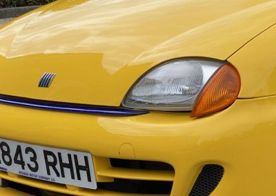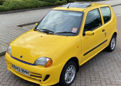 One of the first produced, and probably the best surviving example of these cute city-cars, this has covered 11,000 miles from new with a well stamped service history. We purchased it directly from the last owner who is a retired RAC inspector and engineer. The condition is exceptional even down to original manufacturers stickers, the first tax disc, and what appears to be evidence of factory wax still in the shuts, engine bay and crevices. The feel of its steering wheel, carpets and upholstery is like being transported back to the Fiat showroom a quarter of a century ago. This is a nippy little thing, and yet just 1108cc (so it is economical and cheap to insure). Honest John’s inspiring on-line review of these rarities is worth a read. Finished in Giallo Ginestra with Oxford Blue trim, this represents an unrepeatable starter-classic opportunity which will turn heads at any event or perhaps one for a micro-car collector to mothball for the future.