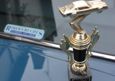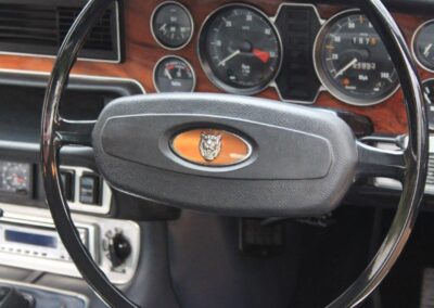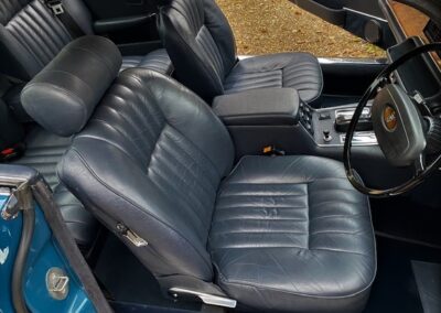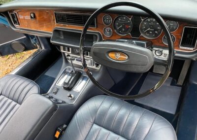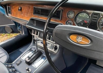 One of the most iconic Jaguar models sought by enthusiasts, yet finding a good example is rare as hens’ teeth. VOY 111S has never suffered the neglect that most other Coupes have in their past, something we can verify having handled the sale of this car exclusively for the past 30 years. It came to us originally with around 32,000 miles in 1992, being one the straightest, low mileage examples to be found. Following a repaint through ourselves due to faded panels, the car became the centre-piece on our stand at the 1993 NEC Classic Motor Show where we were awarded ‘Best Dealer’ by Top Gear. Having sold the car in 1993, it achieved First Place Concours in 1995, and again in 1997, it went to a local doctor spending the next decade driven periodically between homes in Windsor and Spain before being dry stored from around 2006 to 2014 when we reacquired it directly from the doctor who was retiring to Spain. Then subject to extensive replacement of perishables etc through ourselves, a devout JEC enthusiast bought the car for shows and weekend use. We sold it again in 4 years ago to an established customer who has now traded it back with us for a modern Jaguar. With just 64,000 miles covered since new, this Coupe is an exceptionally sound and genuine survivor which is presented in near pristine order. Finished in one of the most attractive and timeless period combinations of Squadron Blue and Navy Hide with the super-desirable chrome pressed wheels, this car turns heads wherever it goes.
