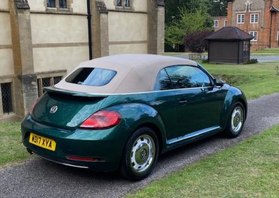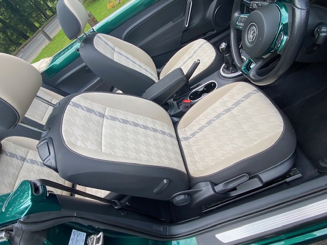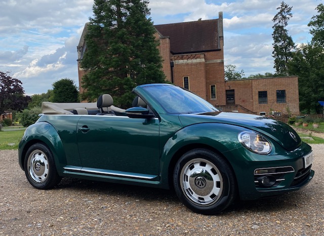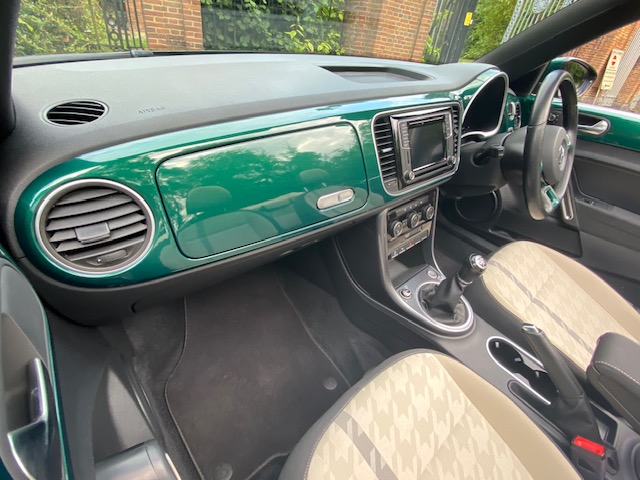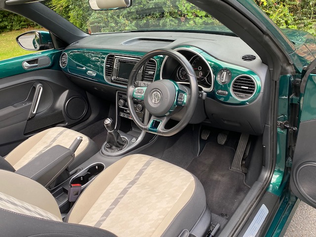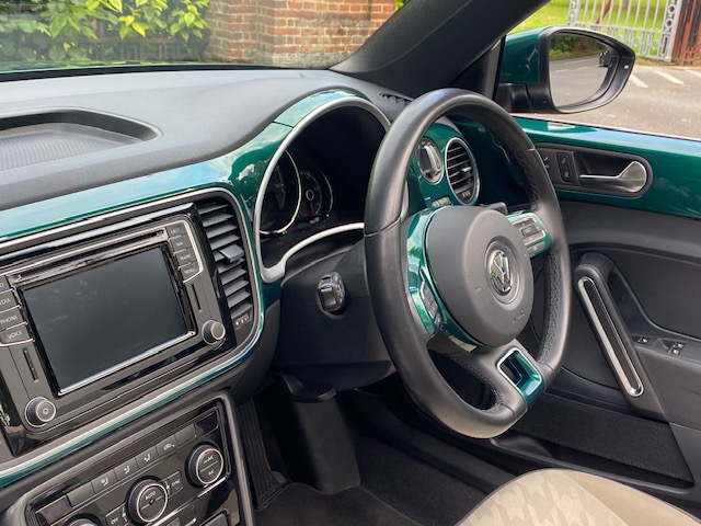 Final development of a brand with its ancestry dating back to 1938: Known as the peoples’ car, Beetles have undeniable cult classic status. This special edition in a rare, exquisite colour scheme of Bottle Green metallic with Tan upholstery and Tan electric foldaway hood so is a real head turner, and a thoroughly practical, modern and individualistic vehicle. With two owners from new- the last being a petrol-head with several interesting vehicles in his stable, we took this in part exchange. He originally bought it from a VW main dealer who have continued to carry out the servicing. The last VW service was just 1,000 miles ago in June 2023- the total mileage being 51,000 since new. The precautionary cam belt change was carried out, while discs, pads and tyres are also recent. Very nicely presented and exceptionally well cared for- the upholstery is notably exceptional with minimal wear and its carpets have been covered with over-mats from new.